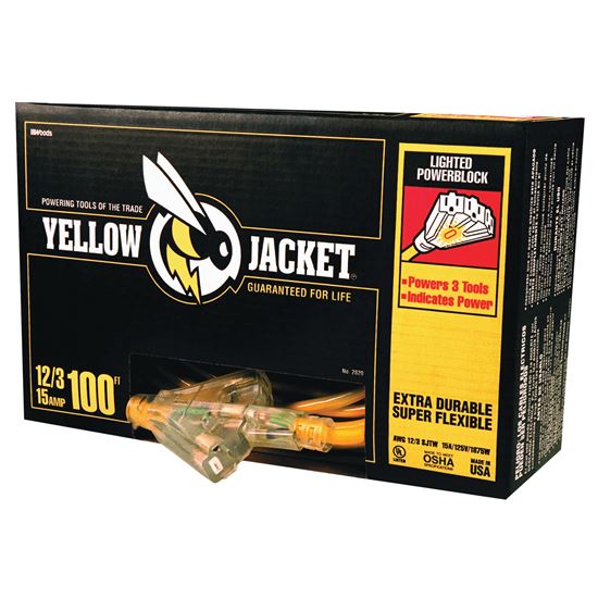 12/3x100' Yel Cord Ext Pwrblk