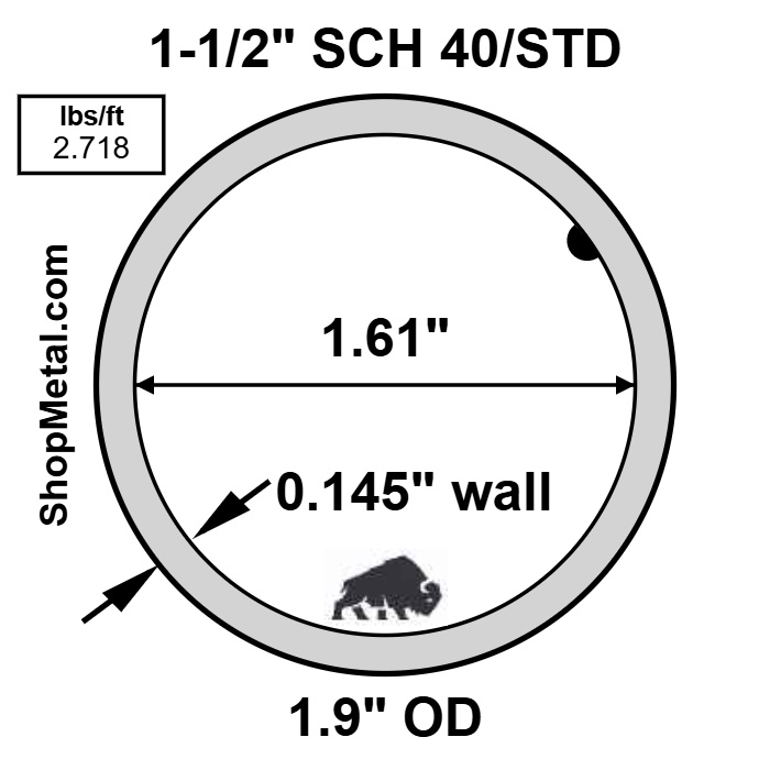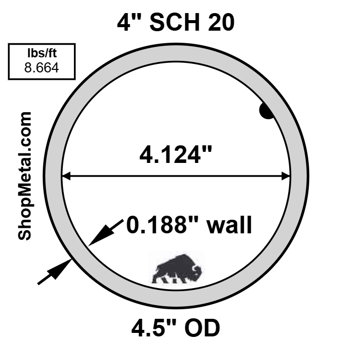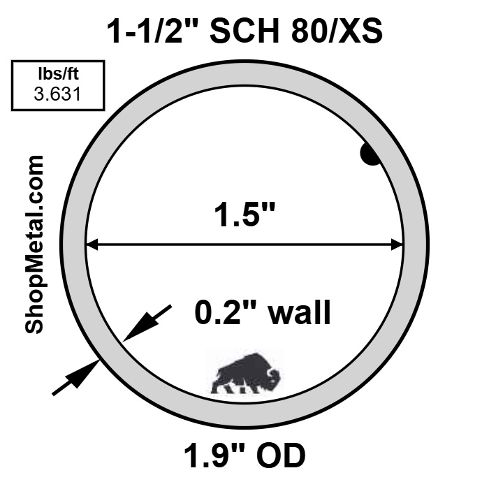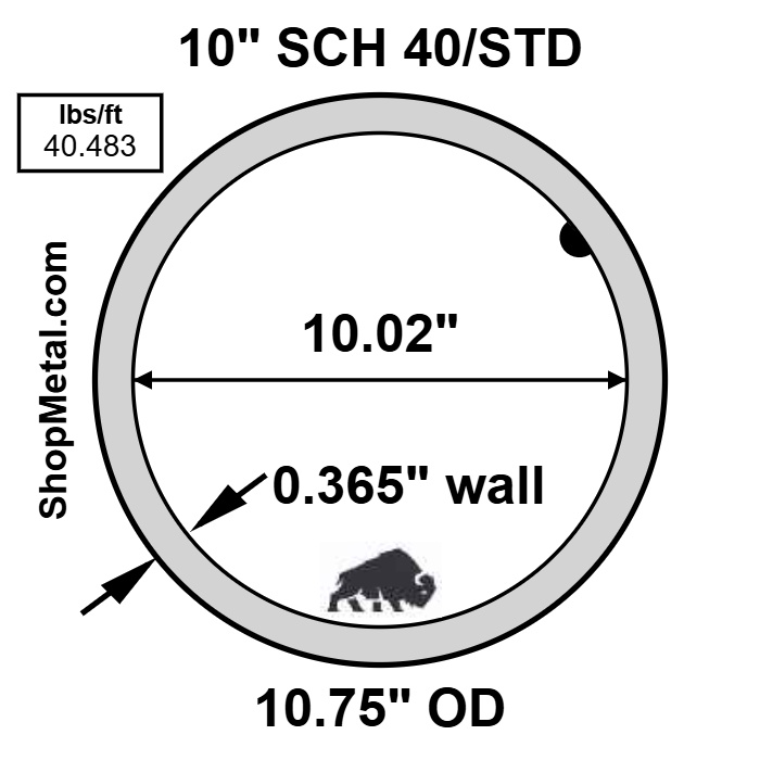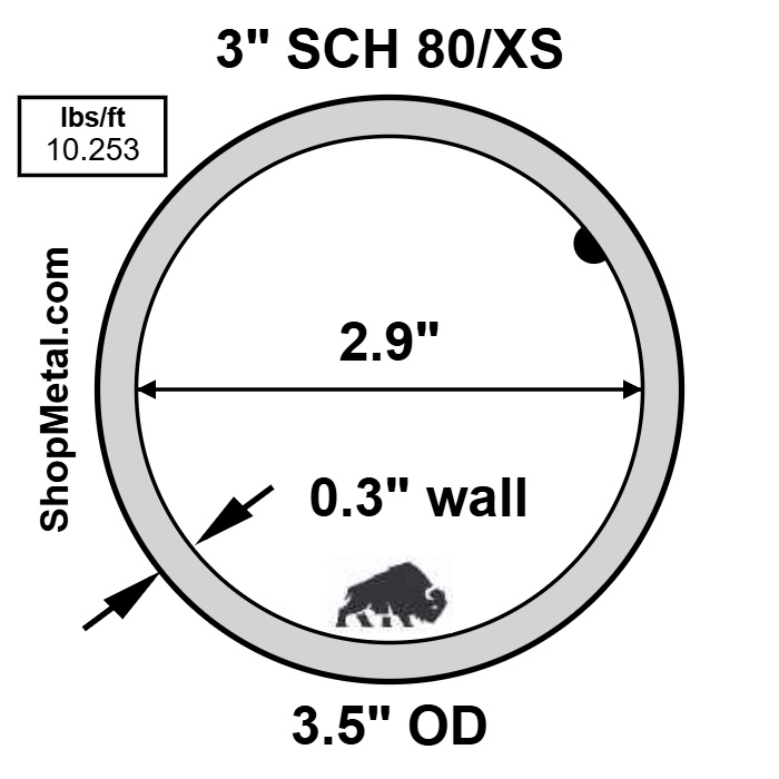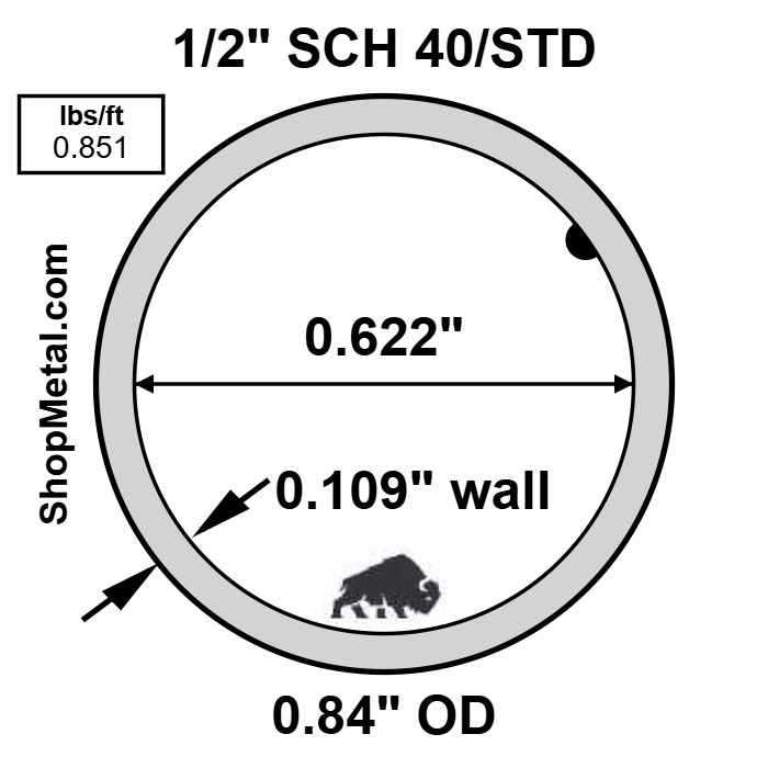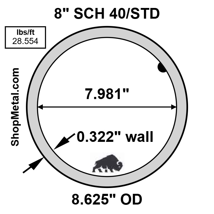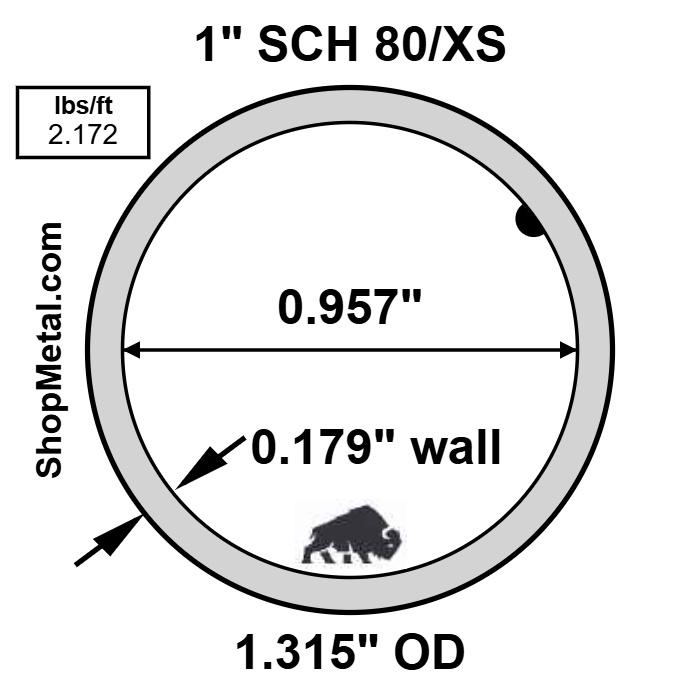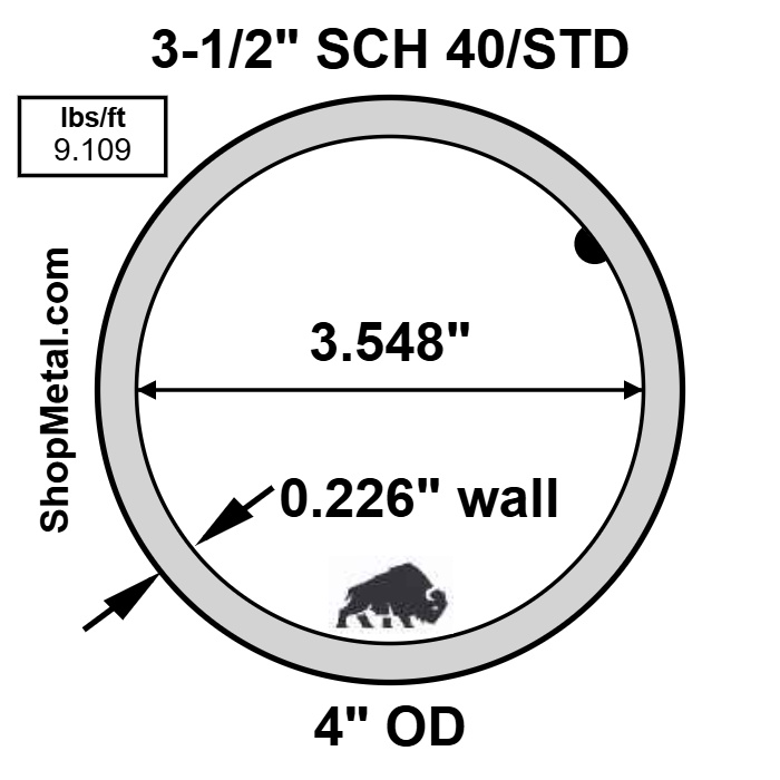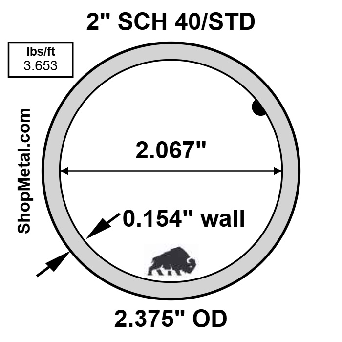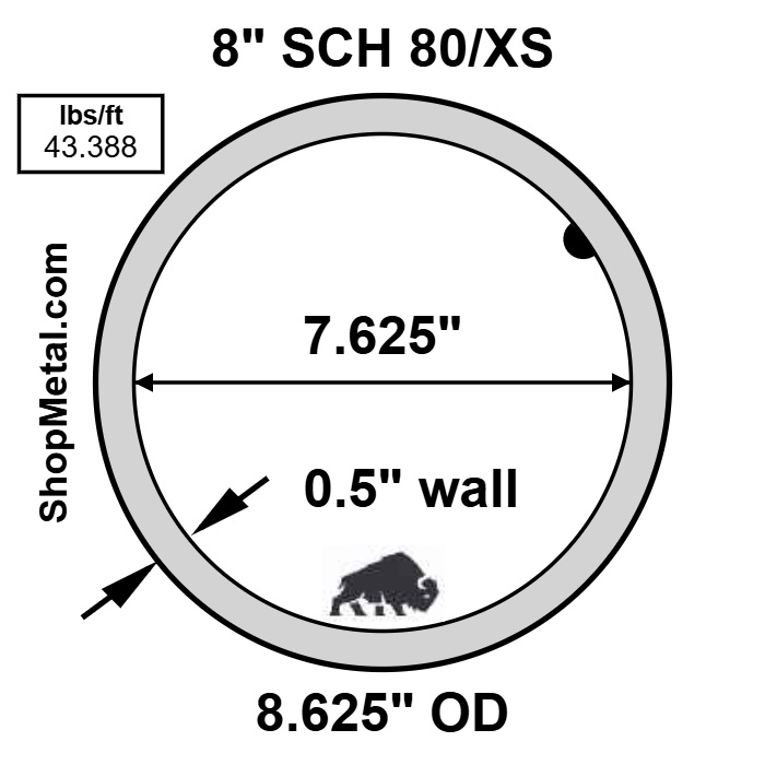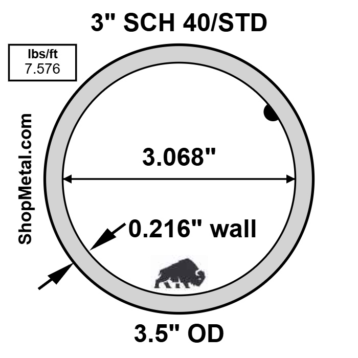 Nominal pipe size (NPS) or inside diameter (ID) and pipe schedule (SCH) define the wall thickness.